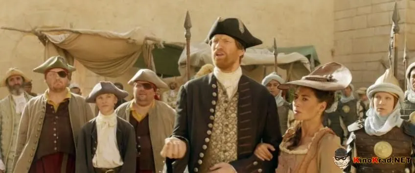 Отличная комедийно-приключенческая кинокартина, которая подходит для людей всех возрастов, а отсутствие возрастных ограничений делает фильм «Капитан Саблезуб и сокровища Лама Рама» прекрасным вариантом для семейного просмотра. Главный герой – смелый и уверенный в себе Капитан Саблезуб, у которого есть собственный корабль, команда и огромное желание отыскать сокровища древних мореплавателей. На последнее путешествие его толкнула карта сокровищ, которую он смог раздобыть в портовом городе. Но выход в море обещает быть не из легких – на судне новый юнга, который не умеет плавать, экипаж до сих пор не отошёл от нападения диких обезьян, а ещё объявились конкуренты – вредные пираты, желающие, во что бы то ни стало, завладеть заветным кладом. Правда, последний пункт немного слабоват, ведь Саблезуб и сам известный пират, считающий, что ему нет равных. А так ли это на самом деле, зритель узнает, наблюдая за историей красавца-капитана, образ которого постоянно будет напоминать небезызвестного Джека Воробья и это неудивительно – режиссеры изначально заявили, что в своём творении собираются собрать ряд пародий на приключенческие фильмы 21 века.