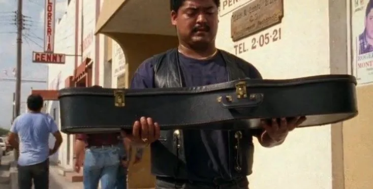 В мексиканский городок прибывает молодой человек с гитарой в чёрном кофре. Именно такого мужчину разыскивают люди наркобарона Моко. В действительности им нужен сбежавший киллер по имени Азул, жаждущий отомстить дилеру. Он облачён в похожую одежду и носит такой же кофр, в котором хранит всё своё боевое снаряжение. Первым на глаза бандитам попадается прибывший музыкант. Отбиваясь от них, он оказался вынужден убить четверых из нападавших головорезов, а затем искать укрытие в баре. Здесь герой криминального триллера «Музыкант» случайно сталкивается с разыскиваемым Азулом, который, уходя, путает их футляры. На улице его сразу же ловят, но, обнаружив в кофре инструмент, отпускают. Найдя оружие у гитариста, его оглушают и ведут к боссу. Видя, что это не убийца, Моко освобождает молодого человека, в то время как Азул уже составил план по спасению пленника и получению денег с наркоторговца.