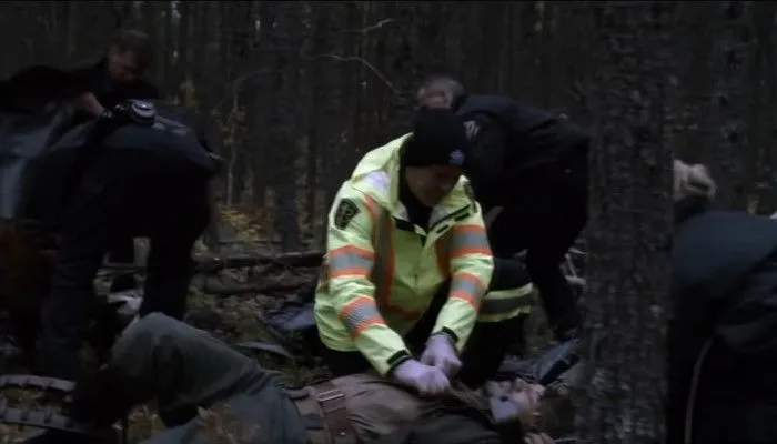фильм о том, что люди страшнее зверей. То, что принимали за деяния волка, оказалось деянием человека. Страшно жить в городах, где маньяки убивают, похищают как взрослых так и детей. И в лесу, в дикой природе, казалось бы, людям с навыками охотника, можно встретиться с маньяком. У девочки подростка хорошо развита интуиция, она с опаской смотрит на раненого незнакомца, а мать не сопоставила факты: муж пропал а незнакомец ранен. В этот момент надо задуматься, а не враг ли это? Но женщина оказывает помощь и в результате теряет дочь. Одержимая ненавистью, она свежует преступника. И в этот момент появляется полиция. Как в диком лесу человек беззащитен пере другим человеком, так же как перед медведем.