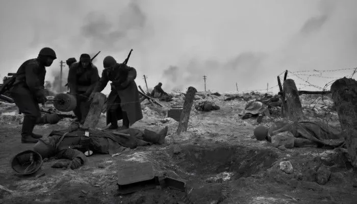 Вторая мировая война стала самой масштабной и кровопролитной за весь период существования человечества. Миллионы погибших солдат и гражданских, концлагеря, страшные опыты и преследования. Победа в ней далась огромной ценой. Осенью 1941-го года немецкие войска подошли вплотную к Москве. В городе началась массовая эвакуация. Тем временем два молодых студента-оператора отказались покидать родной город. Они добились возможности попасть на фронт, в самый эпицентр военных событий. Рискуя жизнями, молодые парни засняли на плёнку самую кровавую и тяжёлую битву. В то же время демонстрируется 15-я церемония вручения всемирно известной награды. Свой первый Оскар получает СССР. Документальная лента, снятая отважными студентами, покорила сердца жюри и тронула их за самую душу. Что пришлось преодолеть операторам, чтобы запечатлеть на плёнку ужасающие военные события?