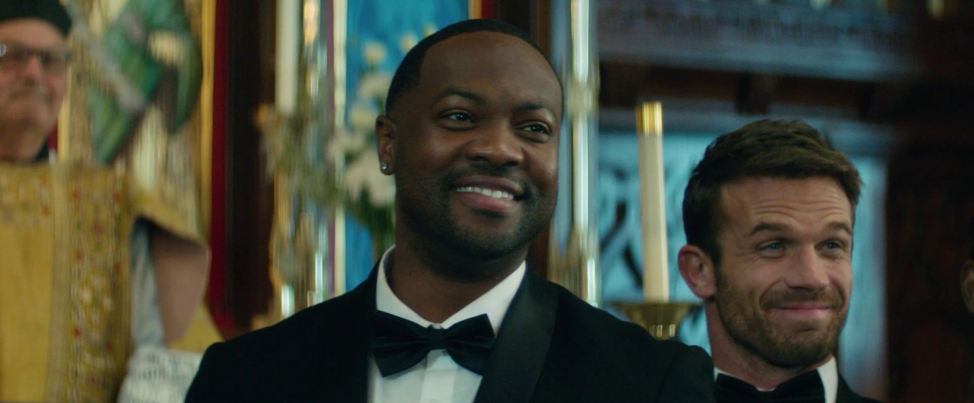 Великолепный собор, украшен к свадьбе, на скамейках сидят нарядные гости, шафер второпях дописывает речь, а жених ожидает невесту. Уже вышли подружки, все заняли свои места. А виновницы торжества не видно.